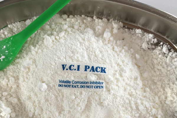 氣相防銹粉末多種特制的氣相緩蝕劑原料按一定配比均勻混合加工而成,具有水溶性,是一種新型的氣化性防銹材料。在密閉空間內(nèi),VCI經(jīng)氣化揮發(fā)到金屬的每個(gè)角落,吸附在金屬表面形成致密保護(hù)膜層從而起到防銹的作用